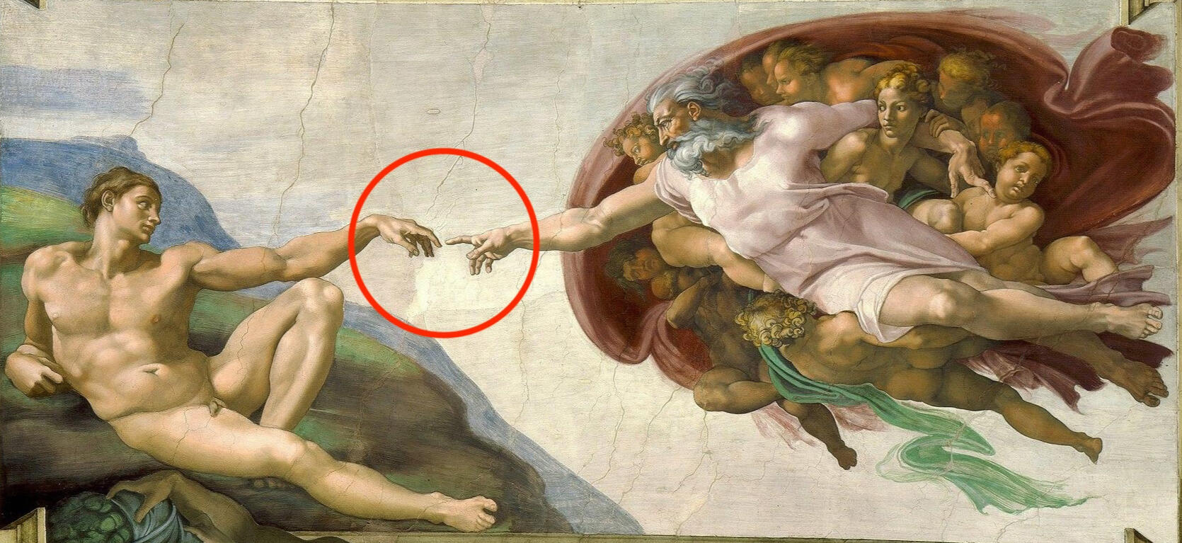 The principle idea of this drawing comes from the ceiling of the Sistine Chapel. The Renaissance master Michelangelo devoted four years of his life to painting the ceiling, an effort that has since been considered the pinnacle of art. And yet, out of all the brilliant designs found swirling across the ceiling, one image has persisted in a state of higher fame. This image, called the Creation of Adam depicts the biblical account of God first creating man. The hand of God reaches assuredly towards Adam, inviting man into relationship. However, Adam doesn’t reciprocate and leaves his hand stretched only feebly in response.
